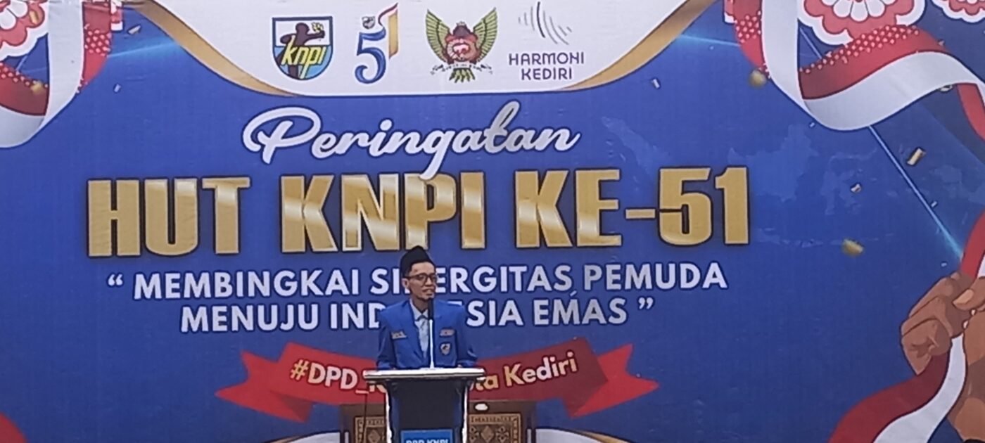 Ketua KNPI Kota Kediri Munjidul Ibad menyampaikan Alhamdulillah pada kegiatan ini kita memperingati HUT KNPI ke-51.