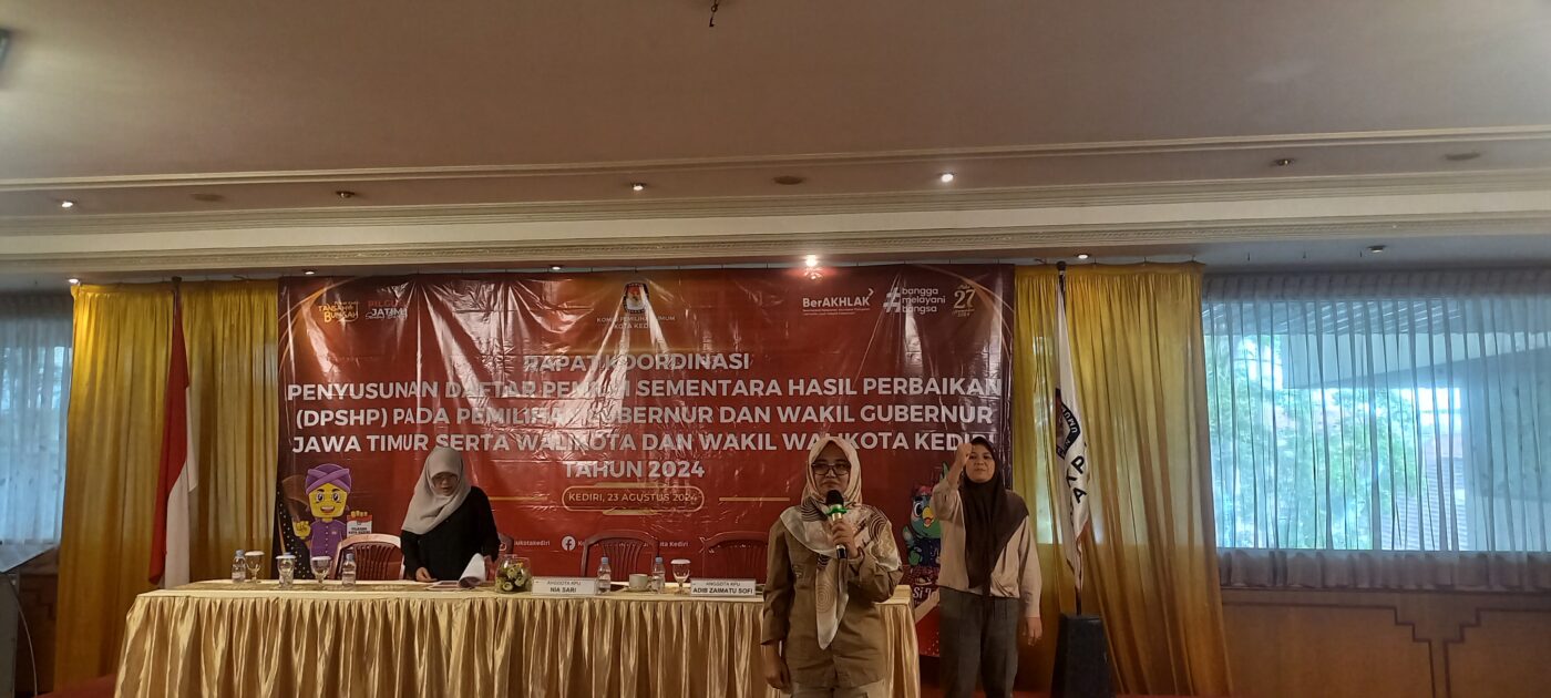 Kota Kediri, Radar Independen – KPU Kota Kediri melaksanakan Rapat Koordinasi (Rakor) Daftar Pemilih Sementara Hasil Perbaikan (DPSHP) yang dihadiri oleh perwakilan dari Bawaslu, Bakesbangpol, PPK dan PPS berlangsung di Golden Resto, Jumat (23/8/2024) pukul 13.30 WIB.