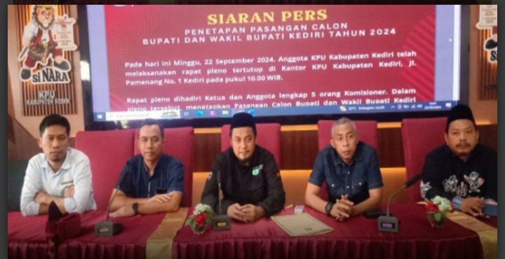 Kediri, Radar Independen – KPU Kabupaten Kediri telah menggelar rapat pleno penetapan pasangan calon Bupati Kediri dan Wakil Bupati Kediri Tahun 2024. Hasil rapat pleno menetapkan Hanindhito Himawan Pramana, S.H., -Hj. Dewi Mariya Ulfa, ST., dan Deny Widyanarko-Dra. Hj. Mudawamah, M.HI, pada Minggu (22/9/2024) pukul 10.30 WIB dikantor KPU Kabupaten Kediri