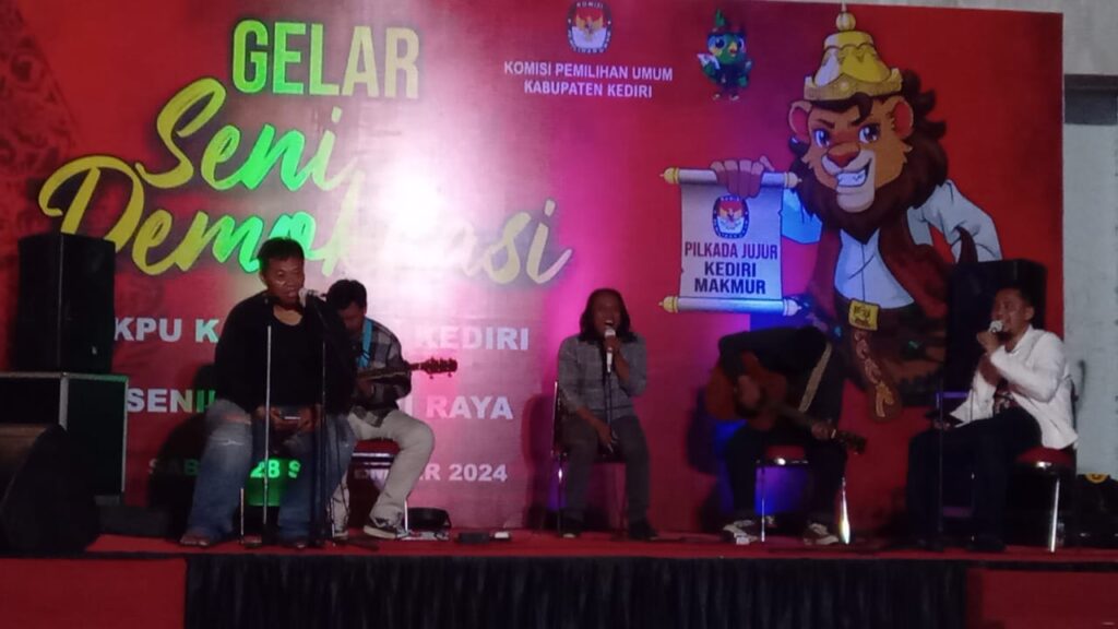 Kediri, Radar Independen – KPU Kabupaten Kediri bekerja sama dengan seniman Kediri Raya mengadakan acara bertajuk “Kebyar Demokrasi” yang digelar di selatan Convention Hall Simpang Lima Gumul, Sabtu (28/9/2024).dimulai pukul 19.00 WIB