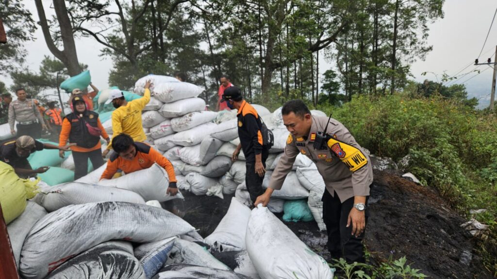 Kepolisian Polres Mojokerto bersama-sama perwakilan Dinas PU, Danramil Pacet, petugas pemadam kebakaran dan relawan, revitalisasi jalur penyelamatan di rest area