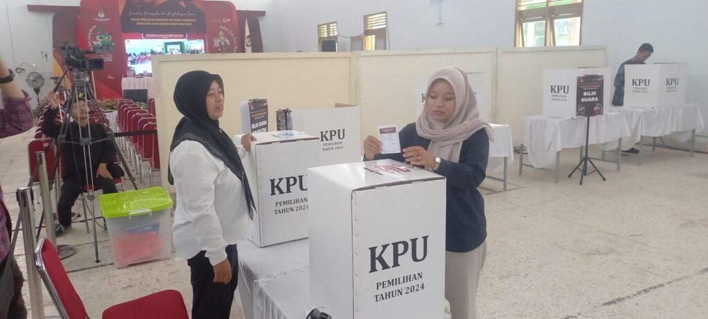Kediri, Radar Independen – Komisi Pemilihan Umum (KPU) Kabupaten Kediri menggelar simulasi pemungutan dan penghitungan suara untuk Pemilihan Gubernur dan Wakil Gubernur serta Bupati dan Wakil Bupati Kediri di Gedung Balai Desa Karangrejo Desa Karangrejo Kec Ngasem Kabupaten Kediri, Minggu (17/11/2024) pagi.