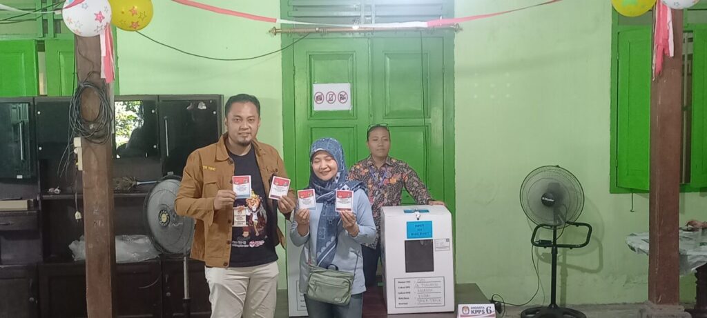 Ketua KPU Kabupaten Kediri Nanang Qosim Bersama Istri Mencoblos Hak Suaranya di TPS 001 di Desa Tugurejo Kecamatan Ngasem