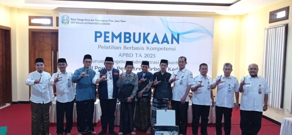 Sekaligus, Kepala Disnakertrans Prov Jatim Sigit Priyanto secara resmi membuka Pelatihan Berbasis Kompetensi Kejuruan Pengelola Administrasi Perkantoran di Pondok Pesantren Lirboyo Kediri, Rabu (9/7/2025).